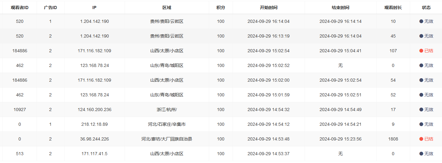 广告浏览--进行人工审核,把浏览改成有效,就会计算积分,无效不计算积分。